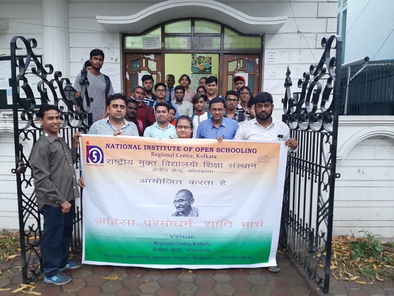 To commemorate the 150th birth anniversary of Mahatma Gandhi commonly known as “ Father of the nation “ a peace rally was organised by NIOS . Based on the instruction received from H.Q ,Regional centre Kolkata also organised a peace rally which began from The regional Centre office premises. All staff members of Regional centre Kolkata participated in the event .